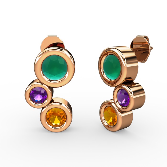 Sitrin, kök zümrüt ve ametist 8 ayar rose altın küpe
