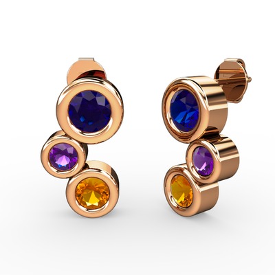 Sitrin, lab safir ve ametist 18 ayar rose altın küpe