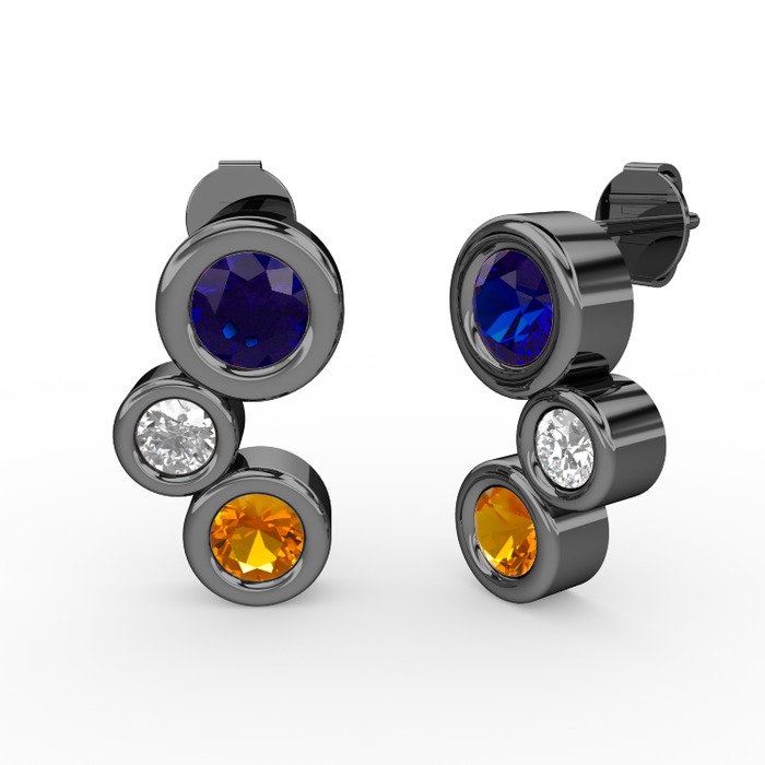 Sitrin, lab safir ve beyaz zirkon 925 ayar siyah rodyum kaplama gümüş küpe