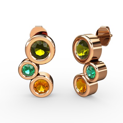 Sitrin, peridot ve yeşil kuvars 18 ayar rose altın küpe