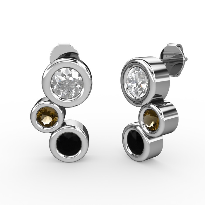 Siyah zirkon, beyaz zirkon ve dumanlı kuvars 8 ayar beyaz altın küpe