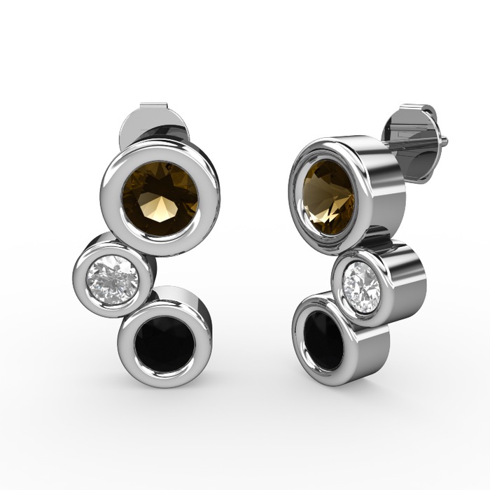 Siyah zirkon, dumanlı kuvars ve swarovski 8 ayar beyaz altın küpe