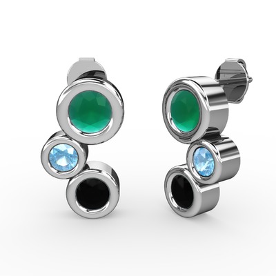 Siyah zirkon, kök zümrüt ve akuamarin 925 ayar gümüş küpe