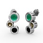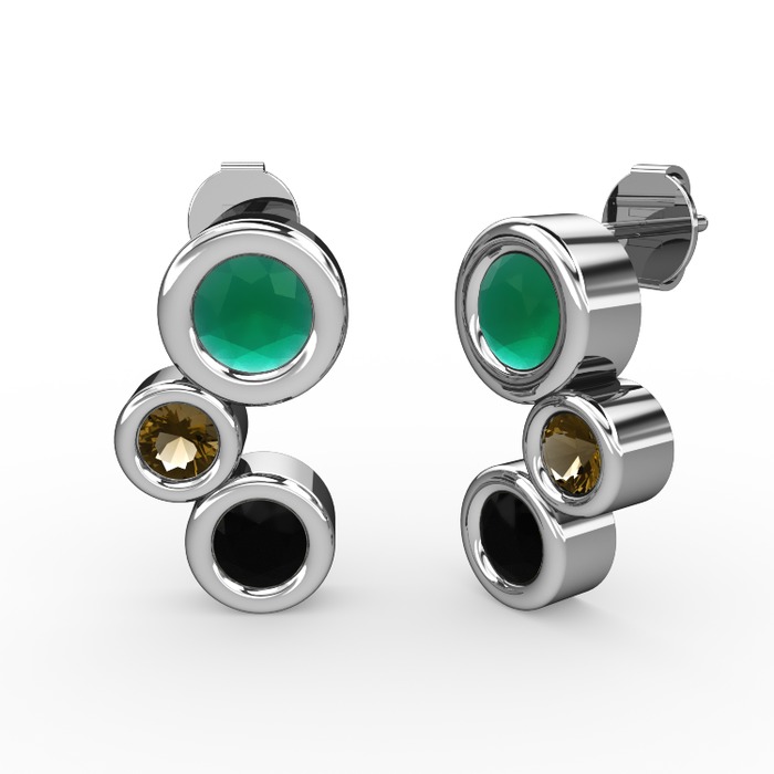 Siyah zirkon, kök zümrüt ve dumanlı kuvars 18 ayar beyaz altın küpe