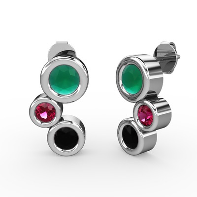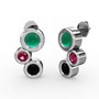 Siyah zirkon, kök zümrüt ve rodolit garnet 18 ayar beyaz altın küpe