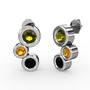 Siyah zirkon, peridot ve sitrin 14 ayar beyaz altın küpe