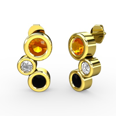 Siyah zirkon, sitrin ve beyaz zirkon 18 ayar altın küpe