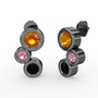 Siyah zirkon, sitrin ve pembe kuvars 925 ayar siyah rodyum kaplama gümüş küpe