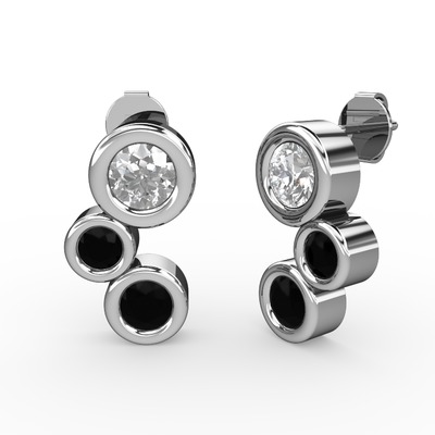 Siyah zirkon ve swarovski 14 ayar beyaz altın küpe