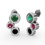Siyah zirkon, yeşil kuvars ve rodolit garnet 18 ayar beyaz altın küpe