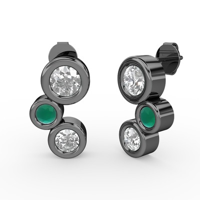Swarovski ve kök zümrüt 925 ayar siyah rodyum kaplama gümüş küpe