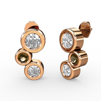 Swarovski, pırlanta ve dumanlı kuvars 14 ayar rose altın küpe (1.84 karat)