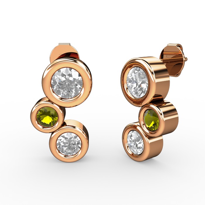 Swarovski, pırlanta ve peridot 14 ayar rose altın küpe (1.84 karat)