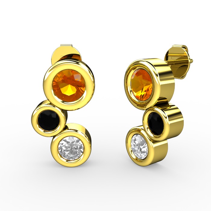 Swarovski, sitrin ve siyah zirkon 8 ayar altın küpe