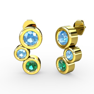 Yeşil kuvars ve akuamarin 18 ayar altın küpe