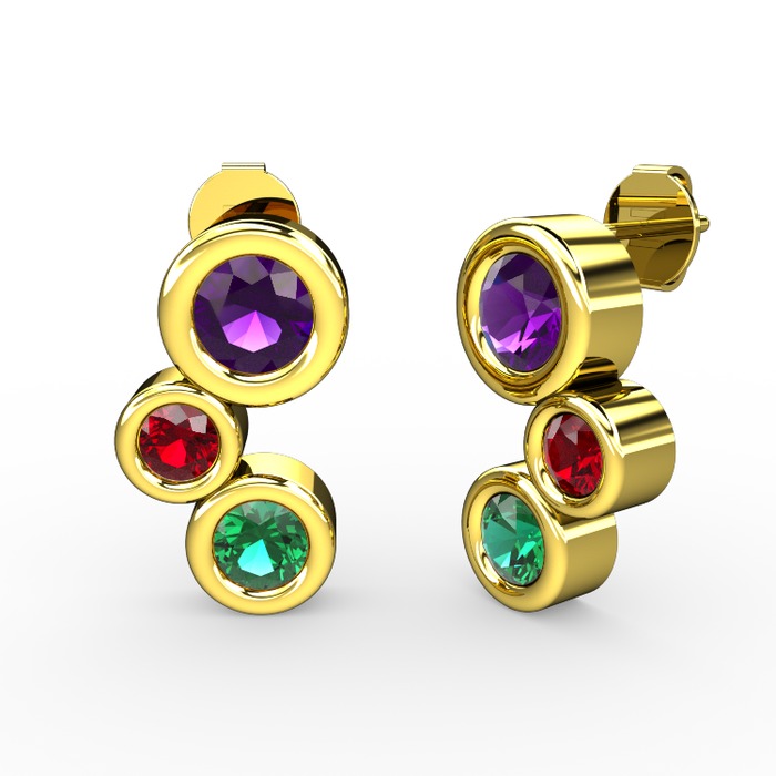 Yeşil kuvars, ametist ve garnet 925 ayar altın kaplama gümüş küpe
