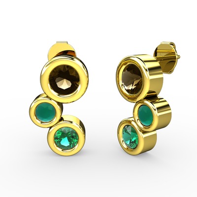 Yeşil kuvars, dumanlı kuvars ve kök zümrüt 925 ayar altın kaplama gümüş küpe