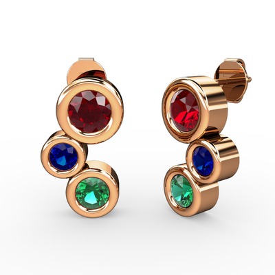 Yeşil kuvars, garnet ve lab safir 14 ayar rose altın küpe