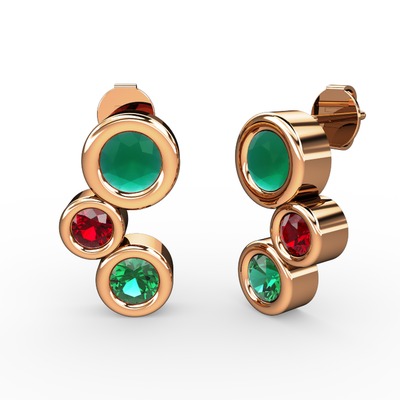 Yeşil kuvars, kök zümrüt ve garnet 14 ayar rose altın küpe
