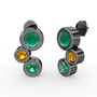 Yeşil kuvars, kök zümrüt ve sitrin 925 ayar siyah rodyum kaplama gümüş küpe