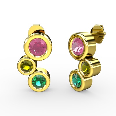 Yeşil kuvars, pembe kuvars ve peridot 925 ayar altın kaplama gümüş küpe