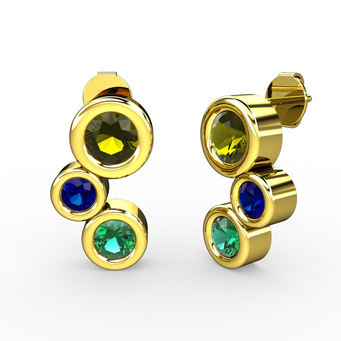 Yeşil kuvars, peridot ve lab safir 925 ayar altın kaplama gümüş küpe