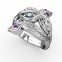 Akuamarin ve ametist 14 ayar beyaz altın yüzük