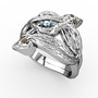 Akuamarin ve dumanlı kuvars 14 ayar beyaz altın yüzük
