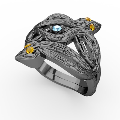 Akuamarin ve sitrin 925 ayar siyah rodyum kaplama gümüş yüzük