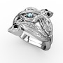 Akuamarin ve siyah zirkon 14 ayar beyaz altın yüzük