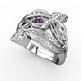 Ametist ve beyaz zirkon 14 ayar beyaz altın yüzük