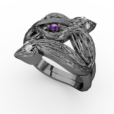 Ametist ve beyaz zirkon 925 ayar siyah rodyum kaplama gümüş yüzük