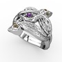 Ametist ve dumanlı kuvars 18 ayar beyaz altın yüzük