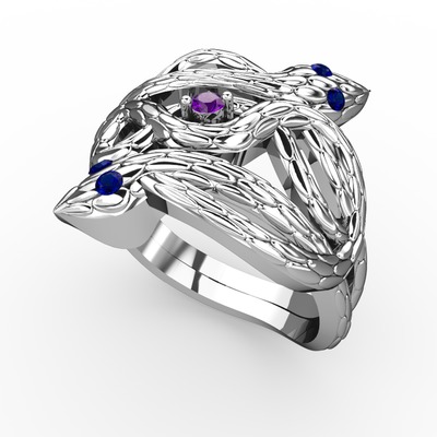 Ametist ve lab safir 18 ayar beyaz altın yüzük