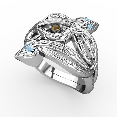 Dumanlı kuvars ve akuamarin 925 ayar gümüş yüzük