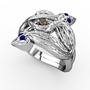 Dumanlı kuvars ve lab safir 14 ayar beyaz altın yüzük