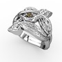 Dumanlı kuvars ve pırlanta 14 ayar beyaz altın yüzük (0.06 karat)