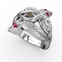 Dumanlı kuvars ve rodolit garnet 18 ayar beyaz altın yüzük