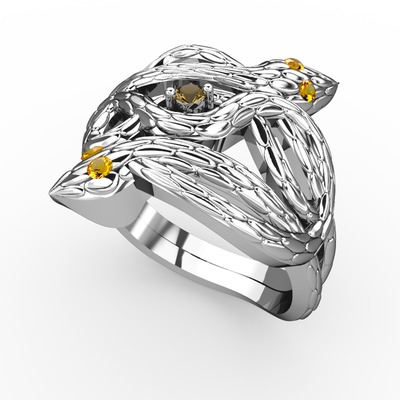 Dumanlı kuvars ve sitrin 14 ayar beyaz altın yüzük