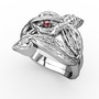 Garnet ve pırlanta 18 ayar beyaz altın yüzük (0.06 karat)