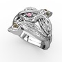 Pembe kuvars ve dumanlı kuvars 18 ayar beyaz altın yüzük