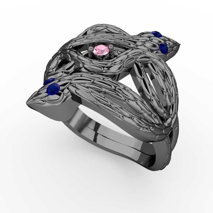 Pembe kuvars ve lab safir 925 ayar siyah rodyum kaplama gümüş yüzük