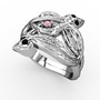 Pembe kuvars ve siyah zirkon 14 ayar beyaz altın yüzük