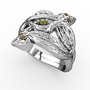 Peridot ve dumanlı kuvars 14 ayar beyaz altın yüzük