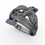 Pırlanta ve lab safir 925 ayar siyah rodyum kaplama gümüş yüzük (0.036 karat)