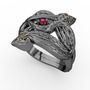 Rodolit garnet ve dumanlı kuvars 925 ayar siyah rodyum kaplama gümüş yüzük