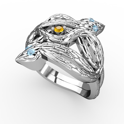 Sitrin ve akuamarin 8 ayar beyaz altın yüzük