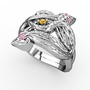 Sitrin ve pembe kuvars 8 ayar beyaz altın yüzük