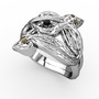 Siyah zirkon ve dumanlı kuvars 8 ayar beyaz altın yüzük
