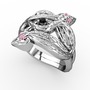 Siyah zirkon ve pembe kuvars 14 ayar beyaz altın yüzük